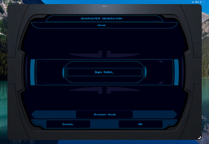 Yes, if you hit the random name generator in Star Wars: Knights of the Old Republic, even now on an iPad, you will eventually get to “Dups” as a first name. I genuinely did not know they had done this. Stanley Woo and Chris Priestly told me this well after the game had come out. So there you go, somewhere, in the randomly generated characters, it is possible that someone played a Star Wars character thinking that “Dups” might be a name from the original “Star Wars” universe.